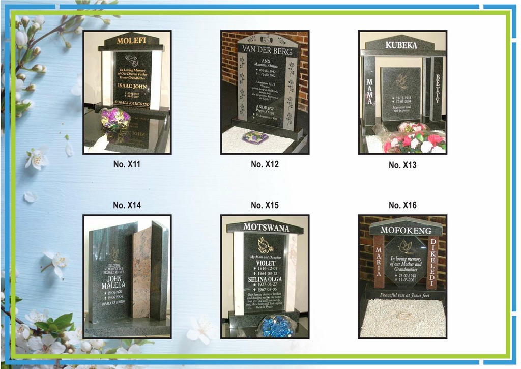 Come and view our selection of Tombstones at Free State Funeral House or browse through our catalogues.